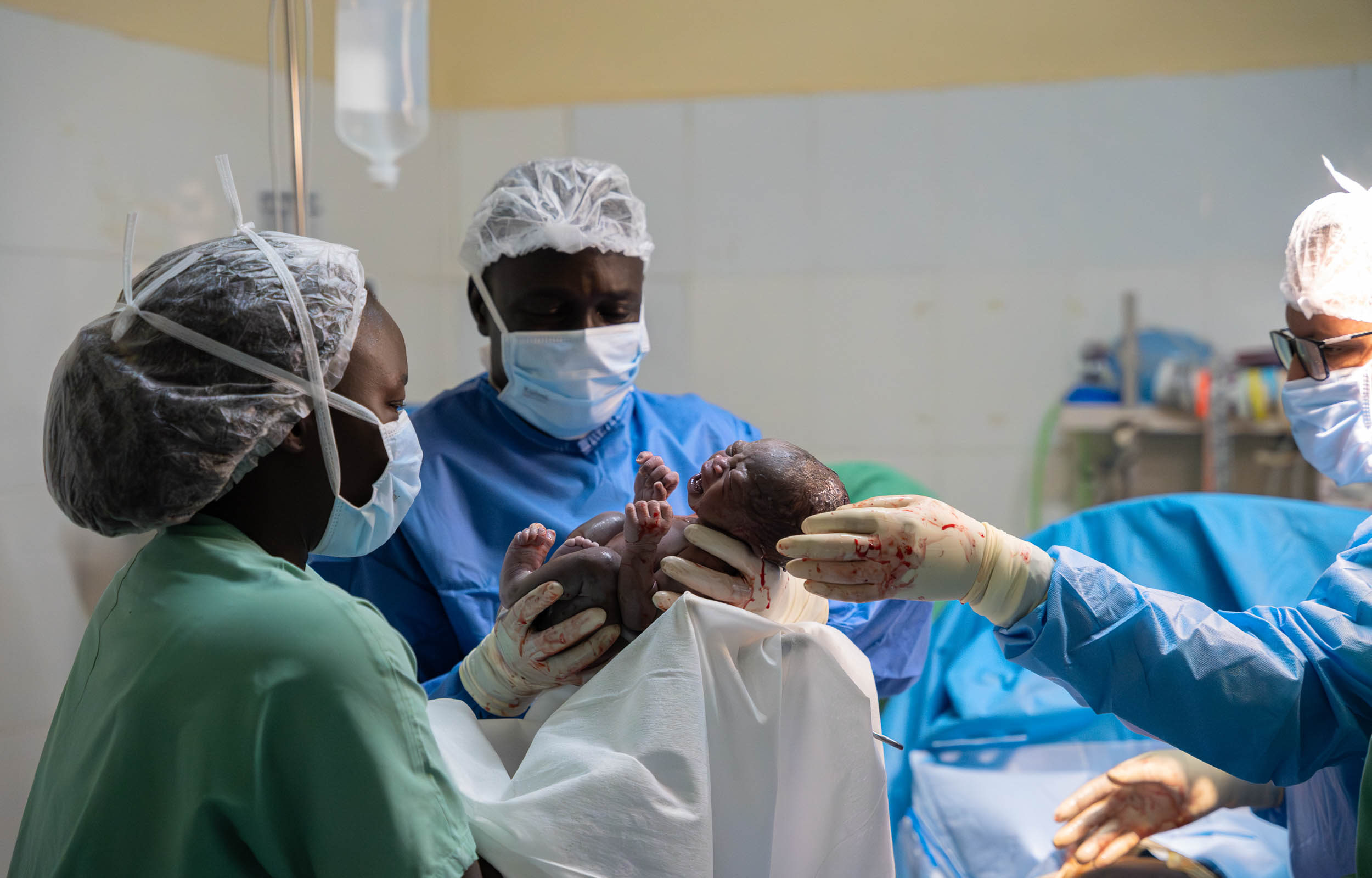 - An MSF surgical team delivers a baby following an emergency caesarean section at Ameth Bek Hospital in Abyei. ©Nicolò Filippo Rosso