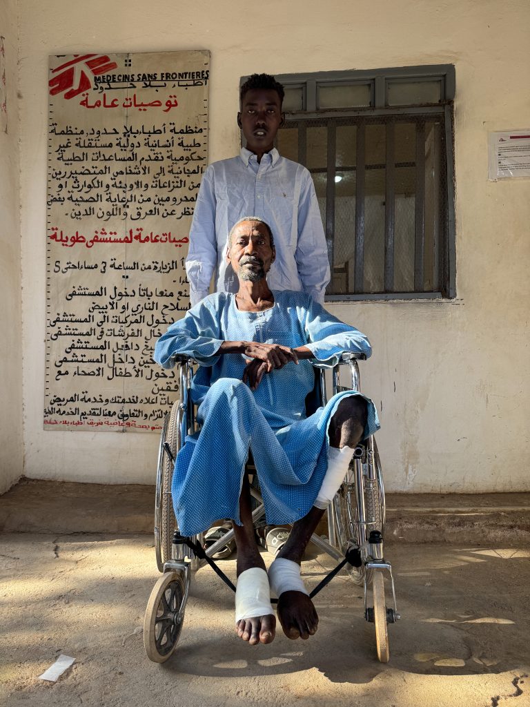 IA* used to work as a watchman in a university in El Fasher. A day before the fall of the city, he was shot in the leg in the middle of a shooting and his tibia shattered in several places. “The wound was bleeding, and my brother made a tourniquet. Then he lifted me onto a donkey cart and brought me here. Can you imagine the pain? It was very hard”, he says. He spent three days on the trails. Despite their efforts, part of his leg had to be amputated when they finally reached Tawila hospital.